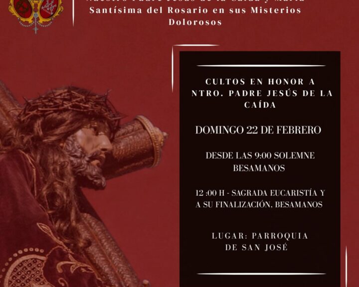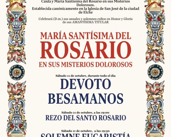 Con motivo de la Festividad Litúrgica de María Santísima del Rosario la Hermandad celebrará (D.m) el próximo sábado, 11 de octubre, los siguientes